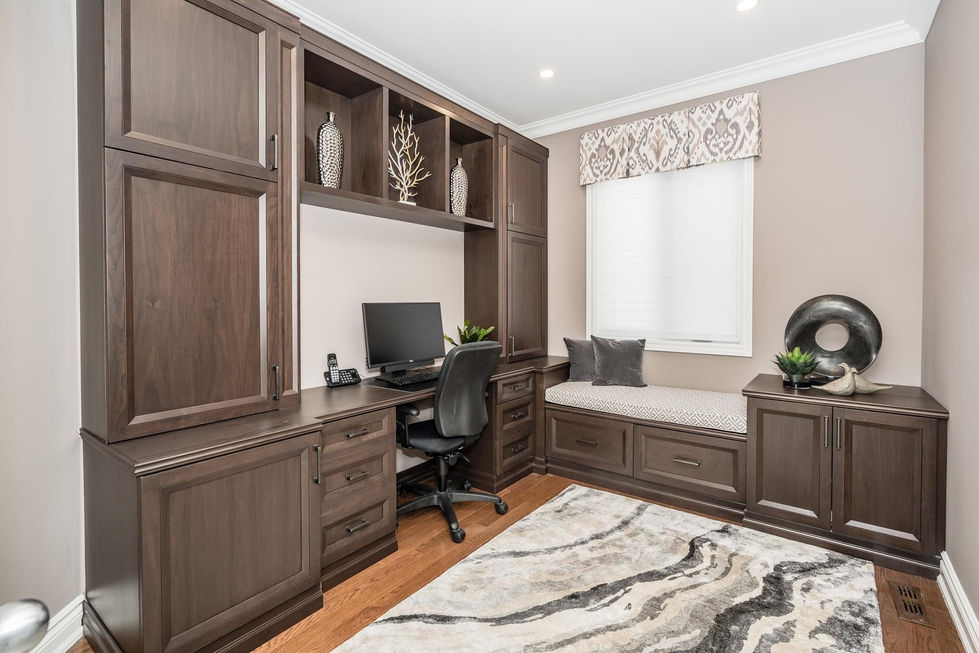 This project showcases elegant home office designs with dark wood cabinetry, built-in desks, and modern decor. The spaces are designed to be functional, stylish, and conducive to productivity.